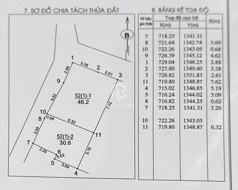 + Diện tích: 30,6m2, mặt tiền 4,37m, nở hậu 5,19m, đất tọa hướng Tây Bắc.