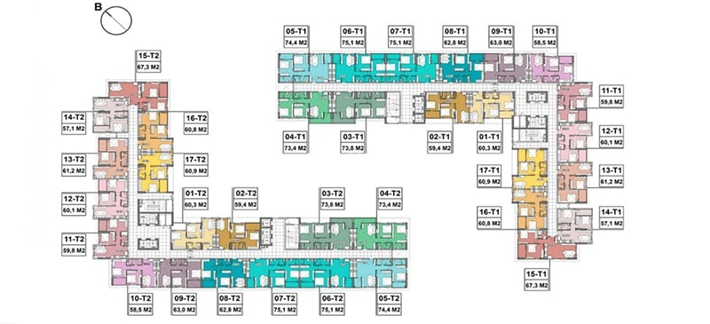 + Diện tích: 60,1m2, thiết kế 2 ngủ, 1vs, ban công tọa hướng Tây Bắc.
